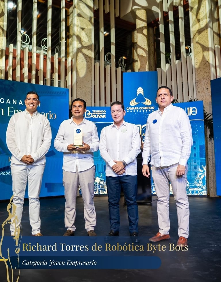 Con inmensa alegría y un orgullo que nos desborda, compartimos la noticia: Richard Torres, nuestro CEO y líder de Robótica ByteBots, ha sido el GANADOR de la prestigiosa categoría Joven Empresario en la Gala de los 110 años de la Cámara de Comercio de Cartagena.